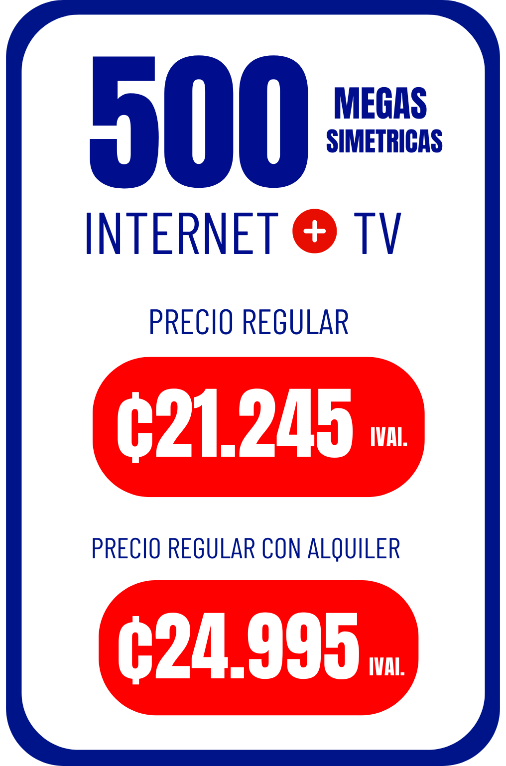 - El precio regular y el precio regular mensual con alquiler incluye los impuestos y tasas de ley: IVA (13%), 911 (0,75%) y Cruz Roja (1%).